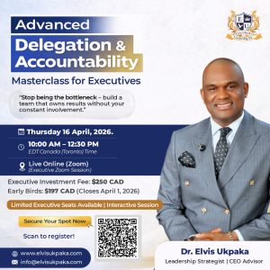 Training Facilitator: Dr. Elvis UKPAKA, President, Elvis Ukpaka Leadership Inc.